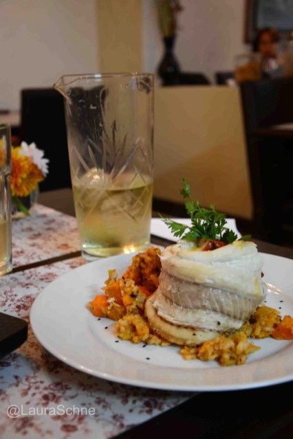 Algunas sugerencias: empezar con un aperitivo, Cinzano rosado con pomelo y naranja acompañado de un shot de camarones. Luego las torrejas de lentejas y arroz yamani y como plato principal el Roule de Atun relleno con queso, tomates secos, semillas de sésamo y rúcula y acompañado con arroz yamani. Para beber, acompañar con agua saborizada a base de manzanilla y jengibre, una exquisitez. Opte por tomarlo amargo, sin edulcorante, se los recomiendo.