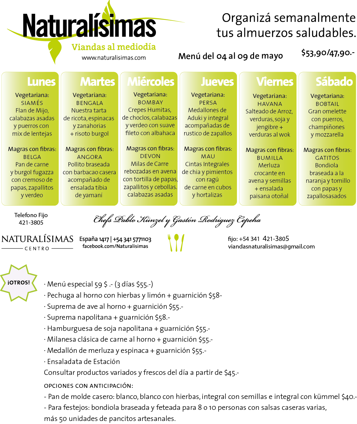 Menú Menú del 04 al 09 de mayo Publicado por Naturalisimas el abril 29, 2015 «Rica, Muy Rica inaugura 15 de mayo!!! « Naturalísimas Centro 421-3805 / 155-771103 España 1417 – Rosario Lunes a sábados de 08 a 15 hs viandasnaturalisimas@gmail.com Comparte esto: Haz clic para compartir en X (Se abre en una ventana nueva) X Haz clic para compartir en Facebook (Se abre en una ventana nueva) Facebook Me gusta Cargando... Relacionado