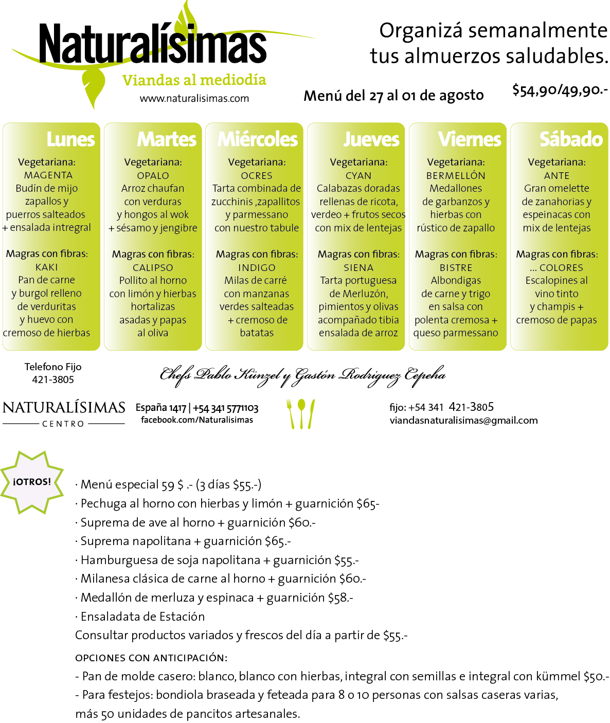 Menú Menú del 27 al 01 de Agosto Publicado por Naturalisimas el julio 23, 2015 «Rica, Muy Rica dejate tentar …..» Naturalísimas Centro 421-3805 / 155-771103 España 1417 – Rosario Lunes a sábados de 08 a 15 hs viandasnaturalisimas@gmail.com Comparte esto: Haz clic para compartir en X (Se abre en una ventana nueva) X Haz clic para compartir en Facebook (Se abre en una ventana nueva) Facebook Me gusta Cargando... Relacionado