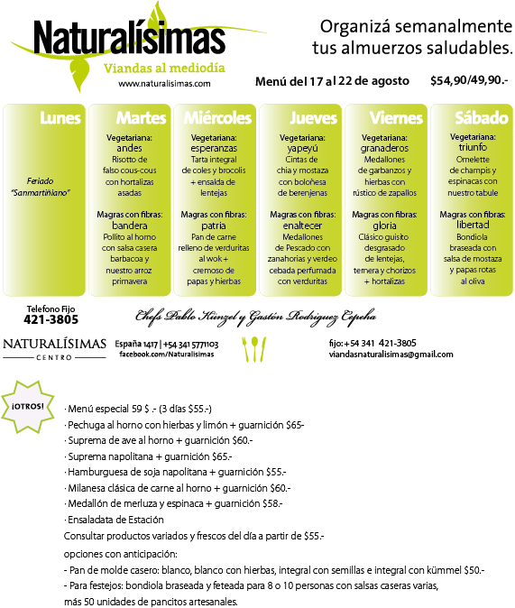 Menú Menú del 17 al 22 de Agosto Publicado por Naturalisimas el agosto 13, 2015 «Rica, Muy Rica dejate tentar …..» Naturalísimas Centro 421-3805 / 155-771103 España 1417 – Rosario Lunes a sábados de 08 a 15 hs viandasnaturalisimas@gmail.com Comparte esto: Haz clic para compartir en X (Se abre en una ventana nueva) X Haz clic para compartir en Facebook (Se abre en una ventana nueva) Facebook Me gusta Cargando... Relacionado