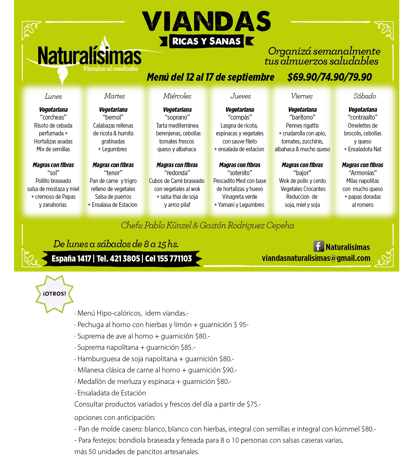 Menú del 12 al 17 de Septiembre