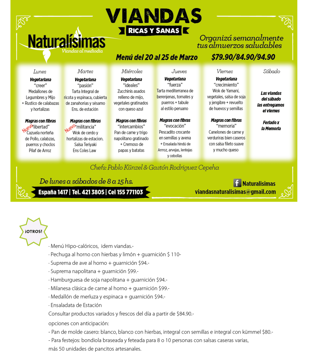 Si pedís de lunes a viernes o más de 20 viandas semanales…. $79.90.-