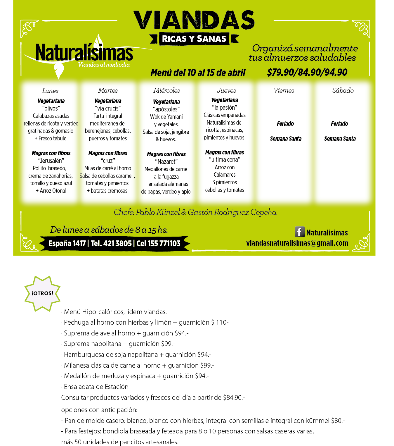 Menú del 10 al 15 de abril