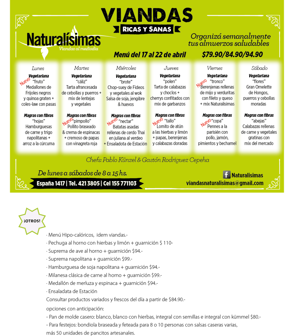 Si pedís de lunes a viernes o más de 20 viandas semanales…. $79.90.-