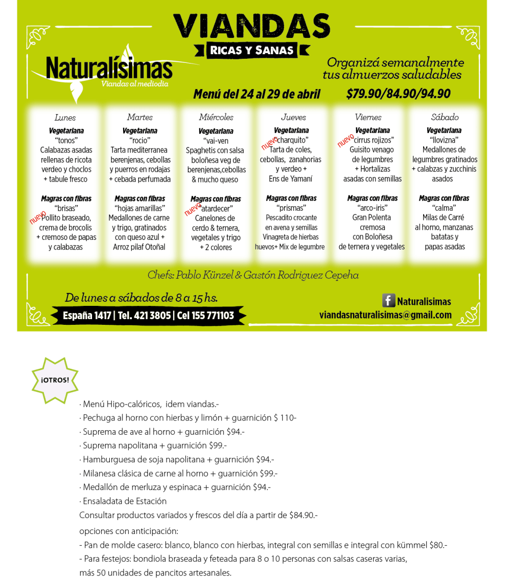 Si pedís de lunes a viernes o más de 20 viandas semanales…. $79.90.-