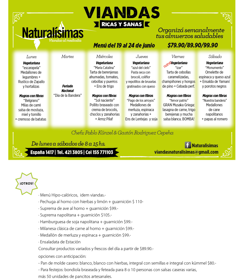 Si pedís de lunes a viernes o más de 20 viandas semanales…. $79.90.-