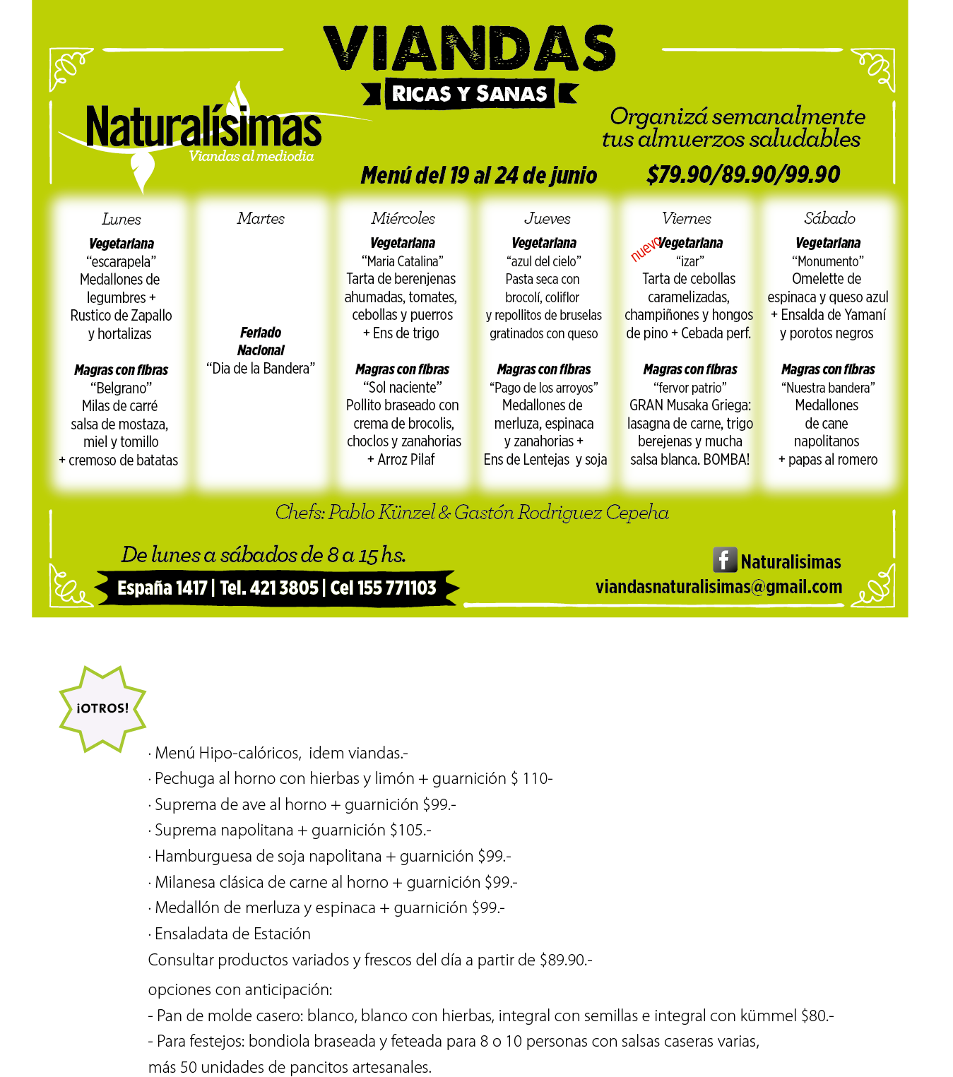 Menú del 19 al 24 de junio !!!