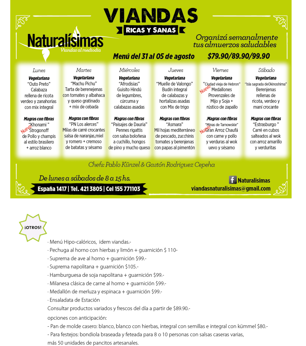 Si pedís de lunes a viernes o más de 20 viandas semanales…. $79.90.-