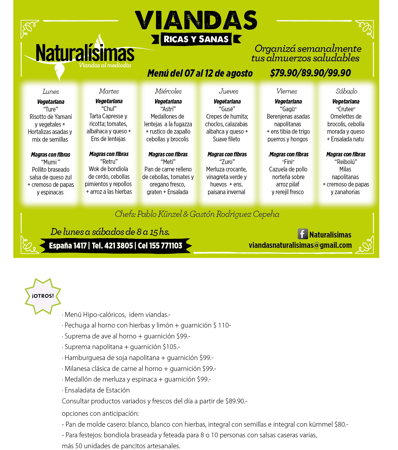 Menú del 12 al 17 de Agosto !