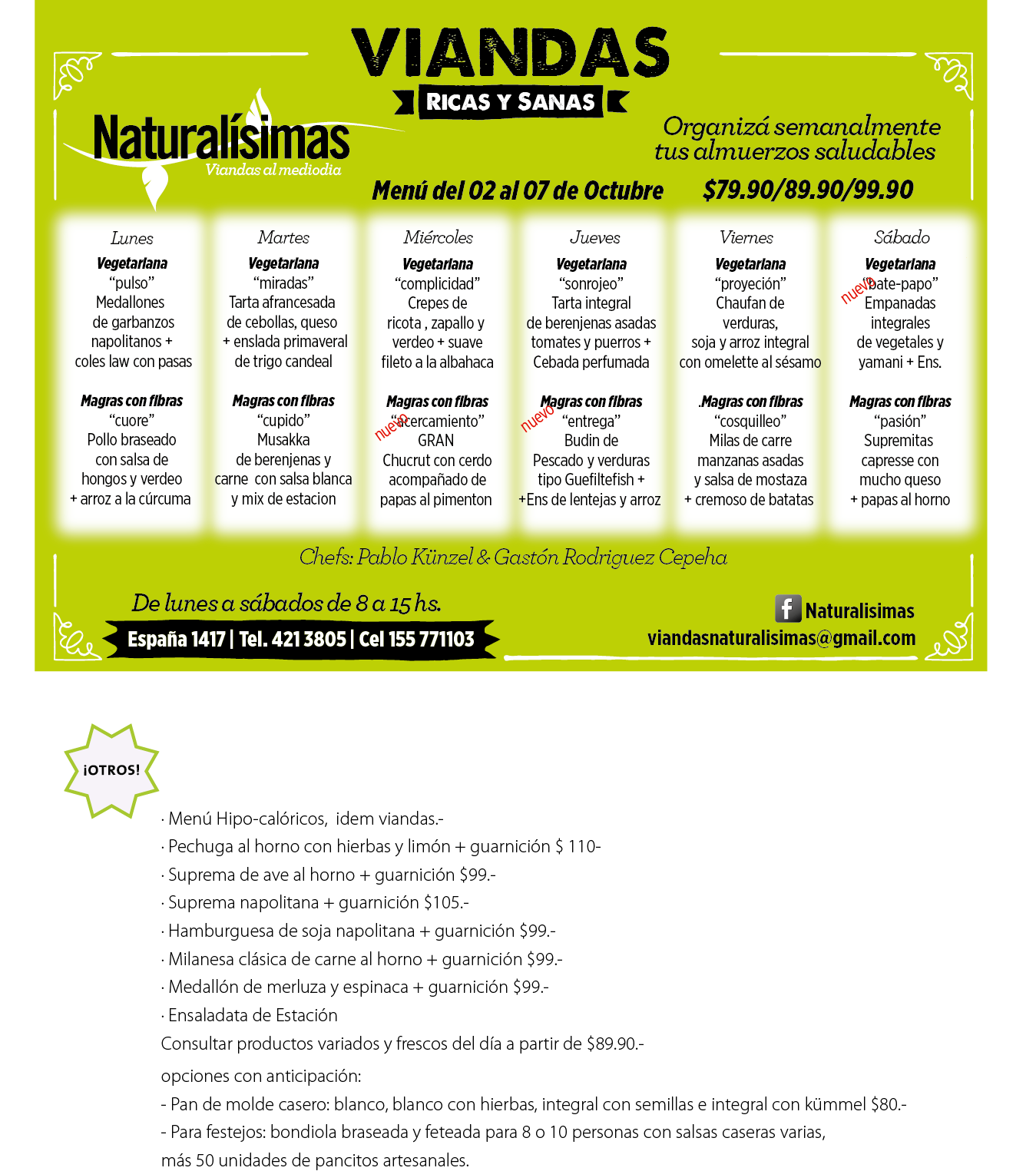 Menú 02 al 07 de octubre !