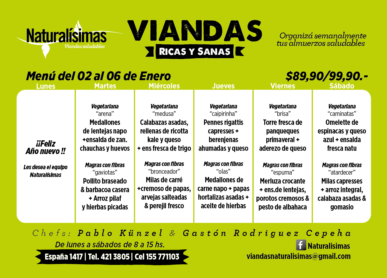 Menú del 01 al 06 de Enero !!