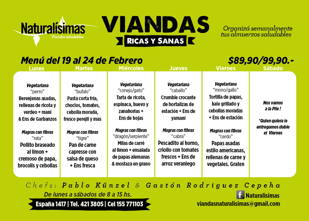 Si pedís de lunes a viernes o más de 10 viandas semanales…. $89.90.
