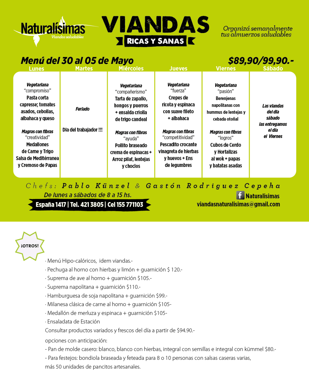 Si pedís de lunes a viernes o más de 10 viandas semanales…. $89.90.