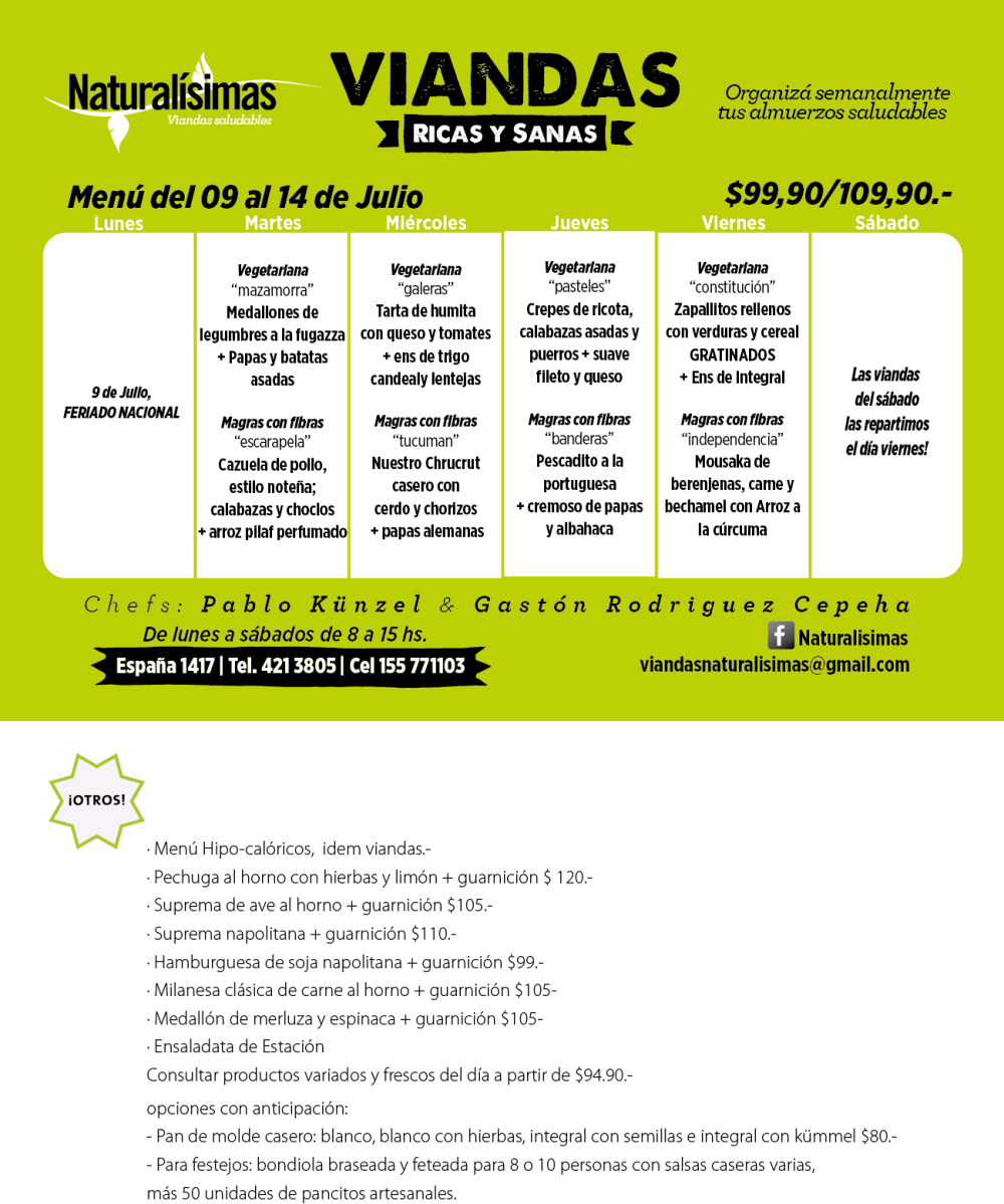Menú del 07 al 13 de julio !