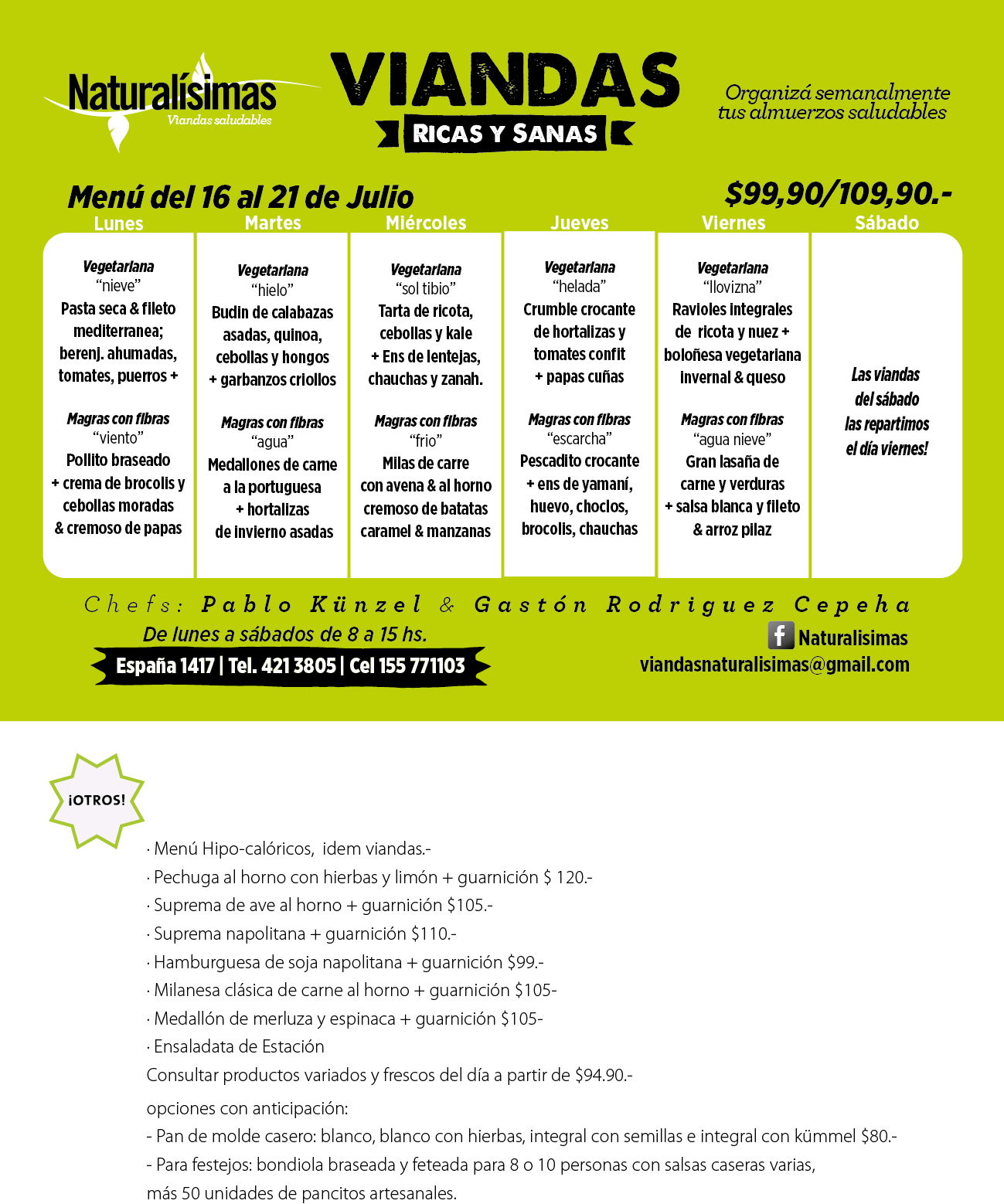 Menú del 16 al 21 de Julio