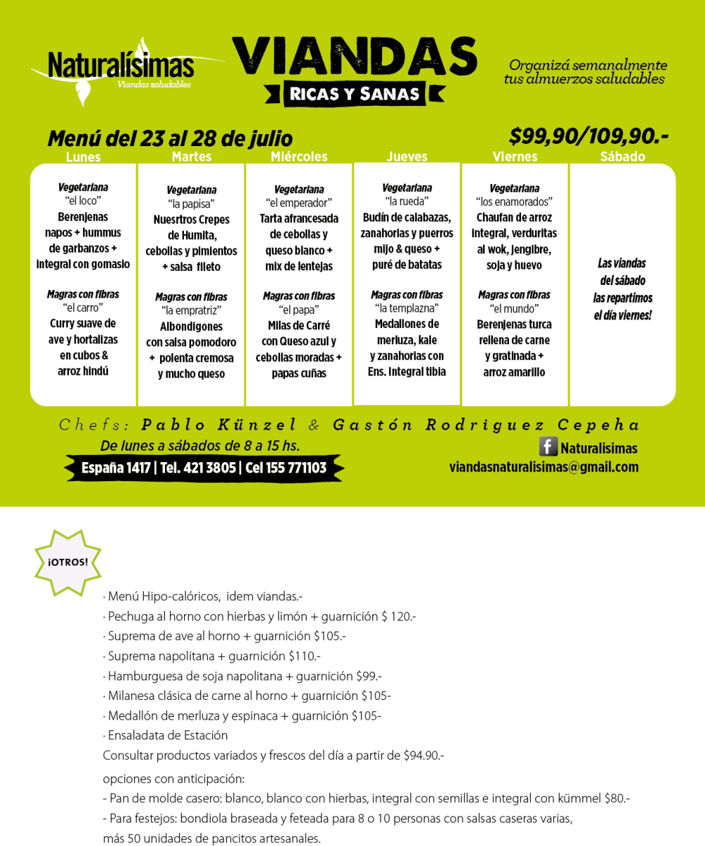 Menú del 23 al 28 de Julio !