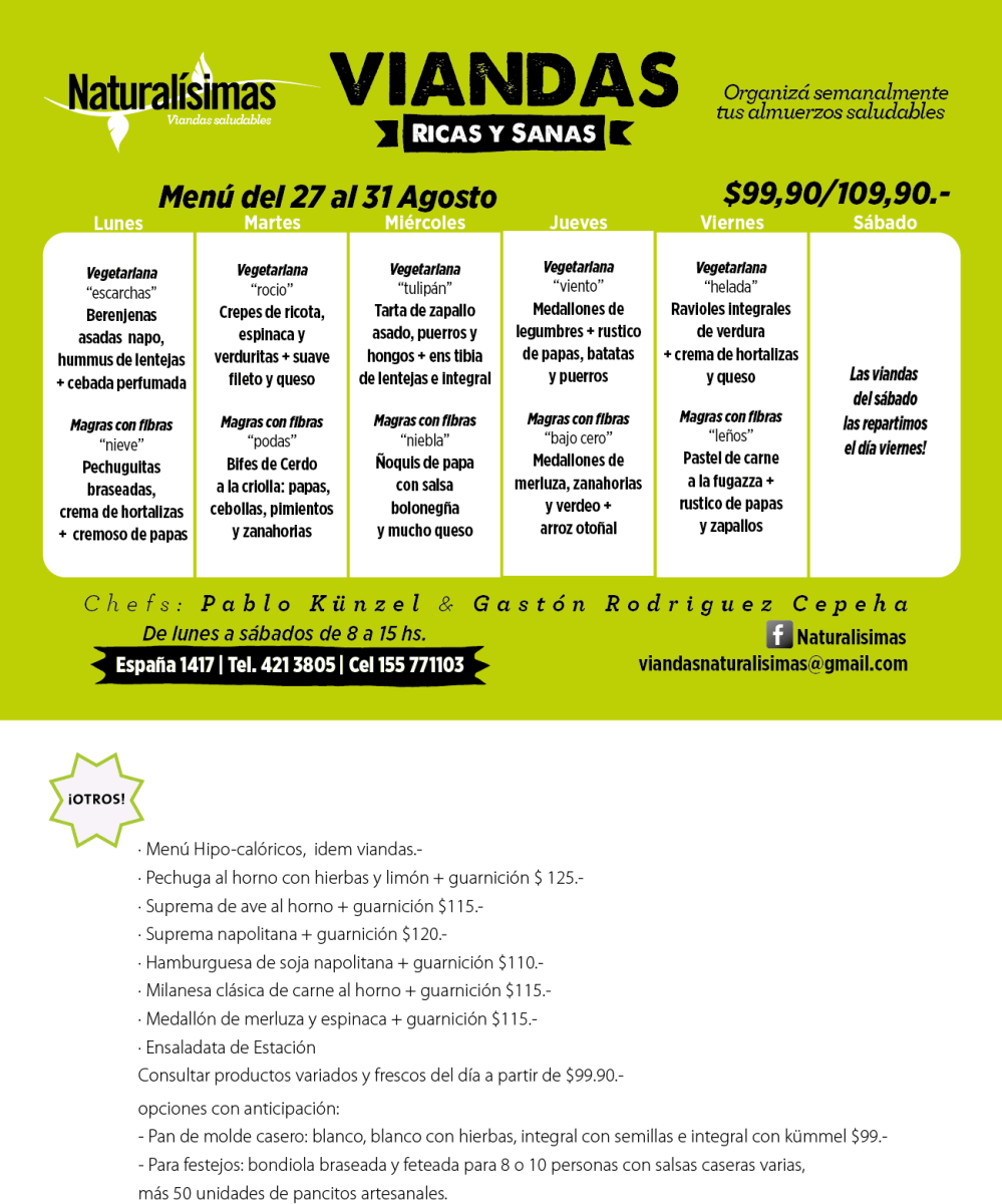 Si pedís de lunes a viernes o más de 10 viandas semanales…. $99.90.