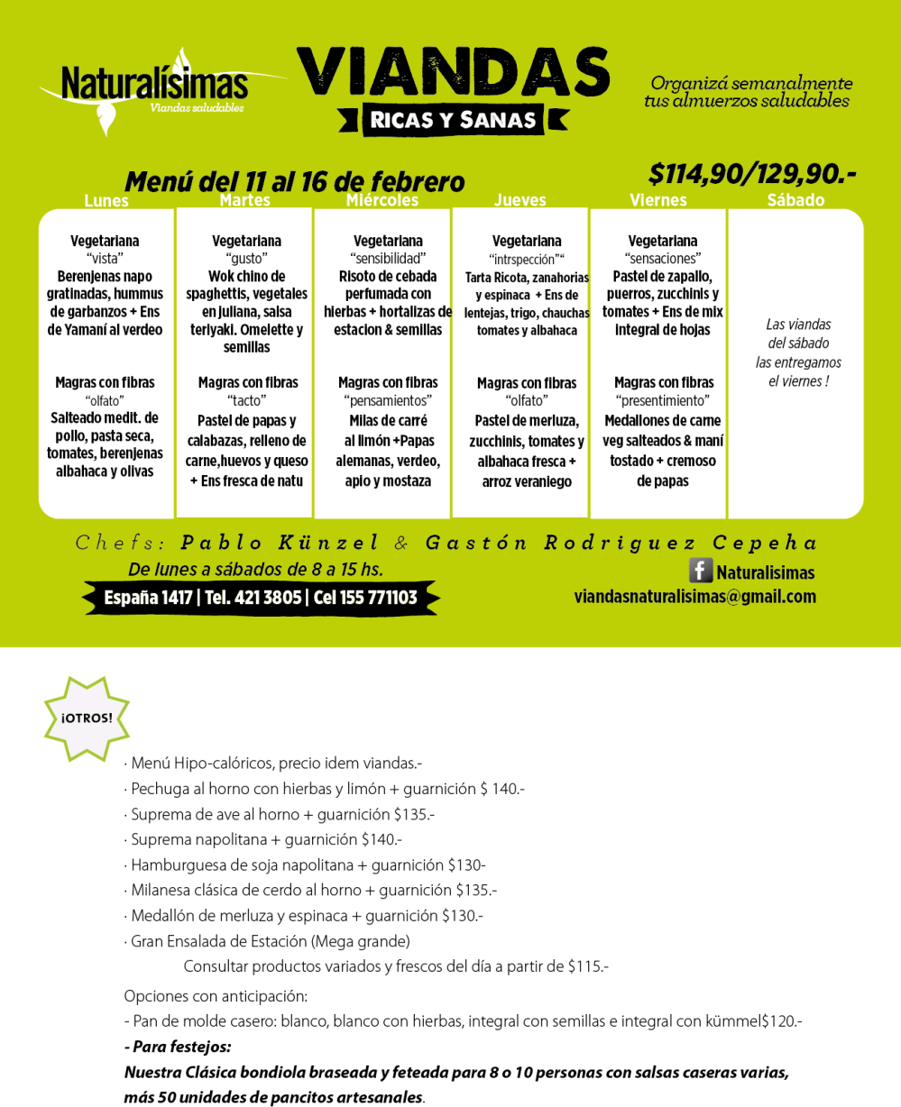 Si pedís de lunes a viernes o más de 10 viandas semanales.... $114.90.-