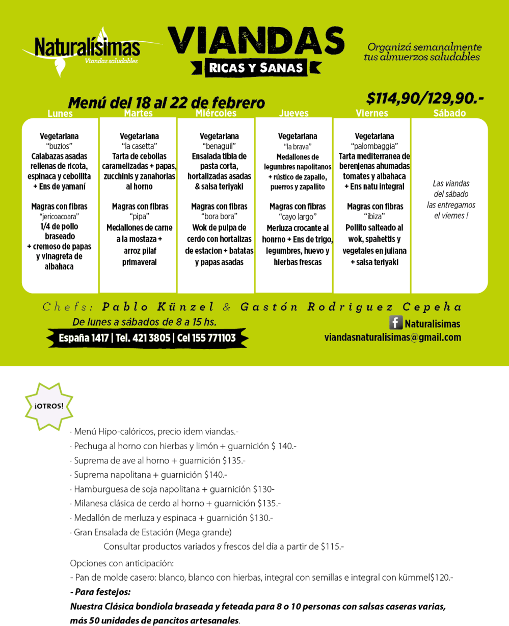 Naturalísimas Centro 421-3805 / 155-771103 España 1417 - Rosario Lunes a sábados de 08 a 15 hs