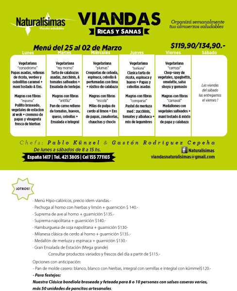 Naturalísimas Centro 421-3805 / 155-771103 España 1417 - Rosario Lunes a sábados de 08 a 15 hs