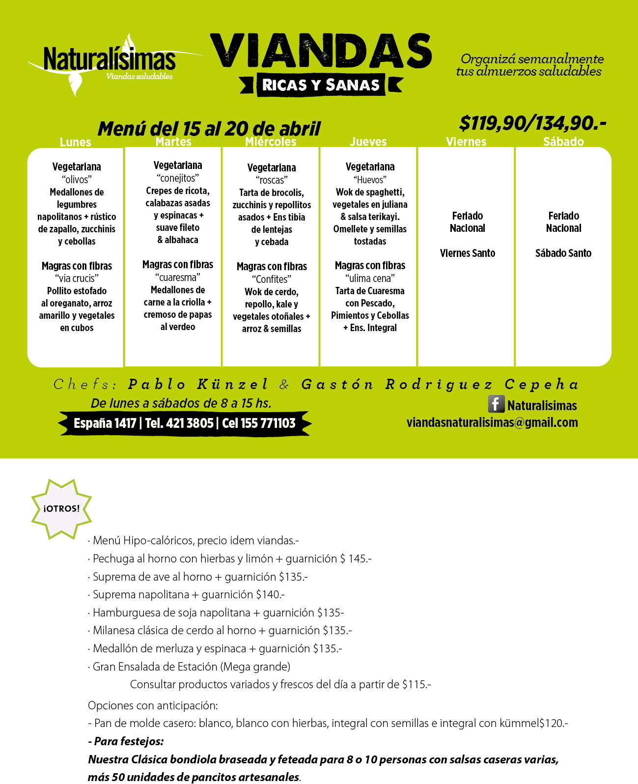 Menú del 15 al 20 de abril
