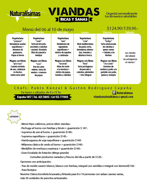 Menú del 06 al 10 de mayo