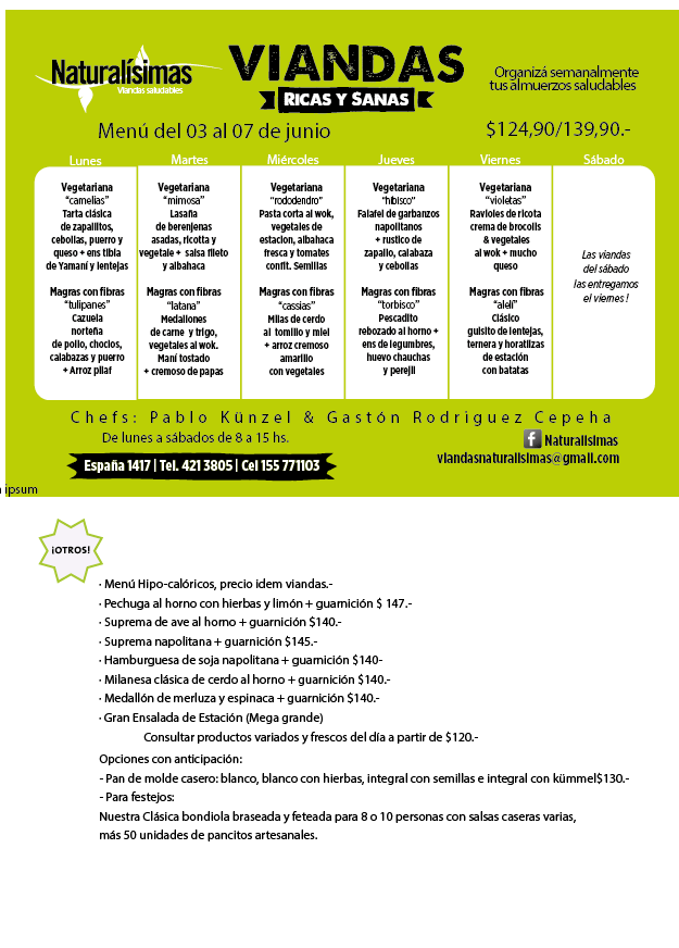 Menú del 03 al 07 de junio