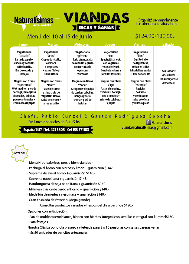 Menú del 10 al 14 de junio