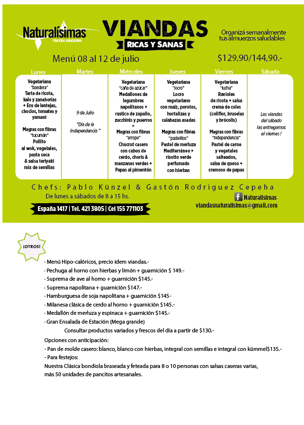 hasta el sábado a la mañana, sino queda sujetos  a disponibilidad de menú y precio de lista. Gracias