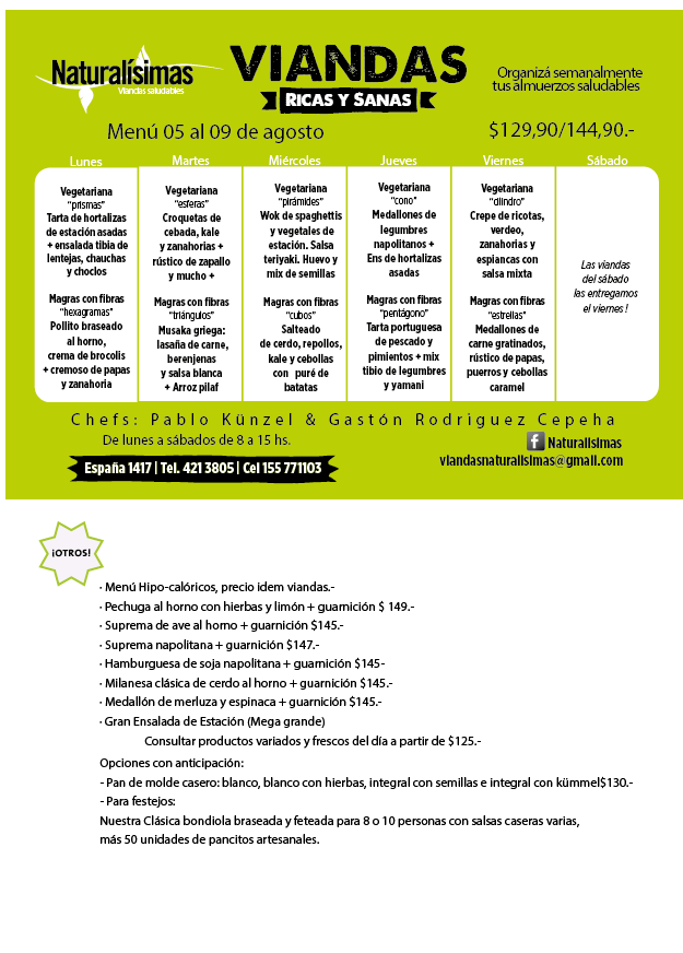 hasta el sábado a la mañana, sino queda sujetos  a disponibilidad de menú y precio de lista. Gracias