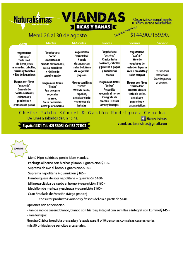Menú del 26 al 30 de agosto !