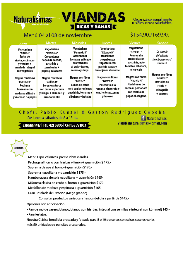Menú del 04 al 08 de noviembre