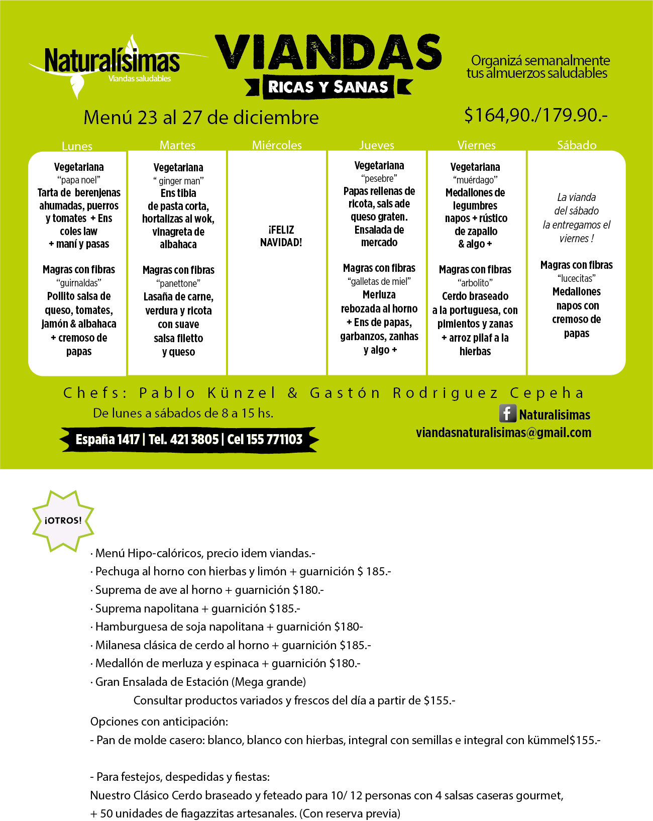 Menú del 23 al 27 de diciembre
