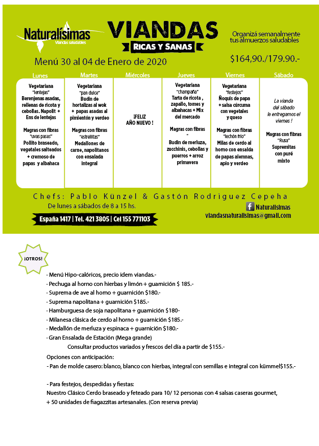Menú del 30 al 04 de enero