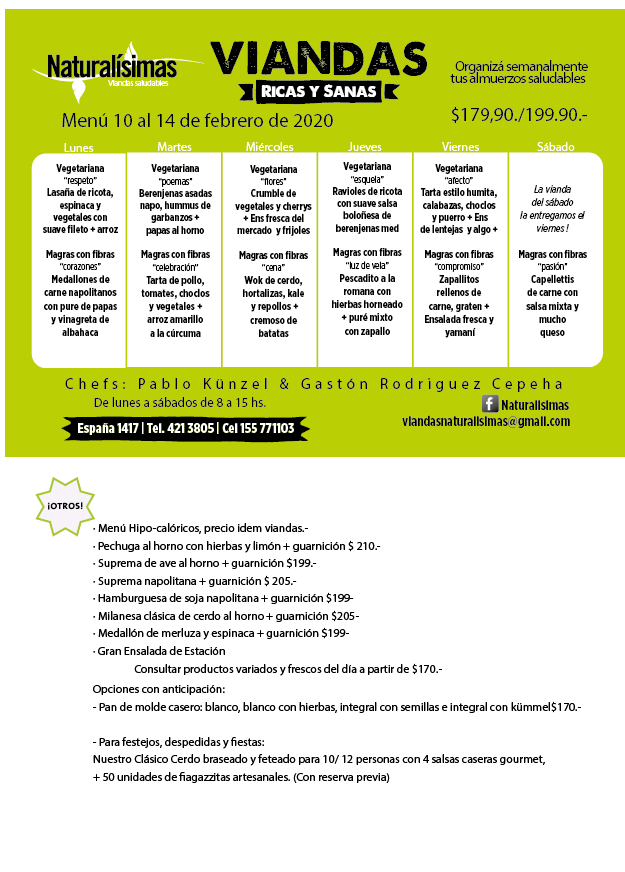 RECORDAR MUY IMPORTANTE: Los pedidos del día lunes los recepcionamos hasta el sábado a la mañana, sino queda sujetos  a disponibilidad de menú y precio de lista. Gracias