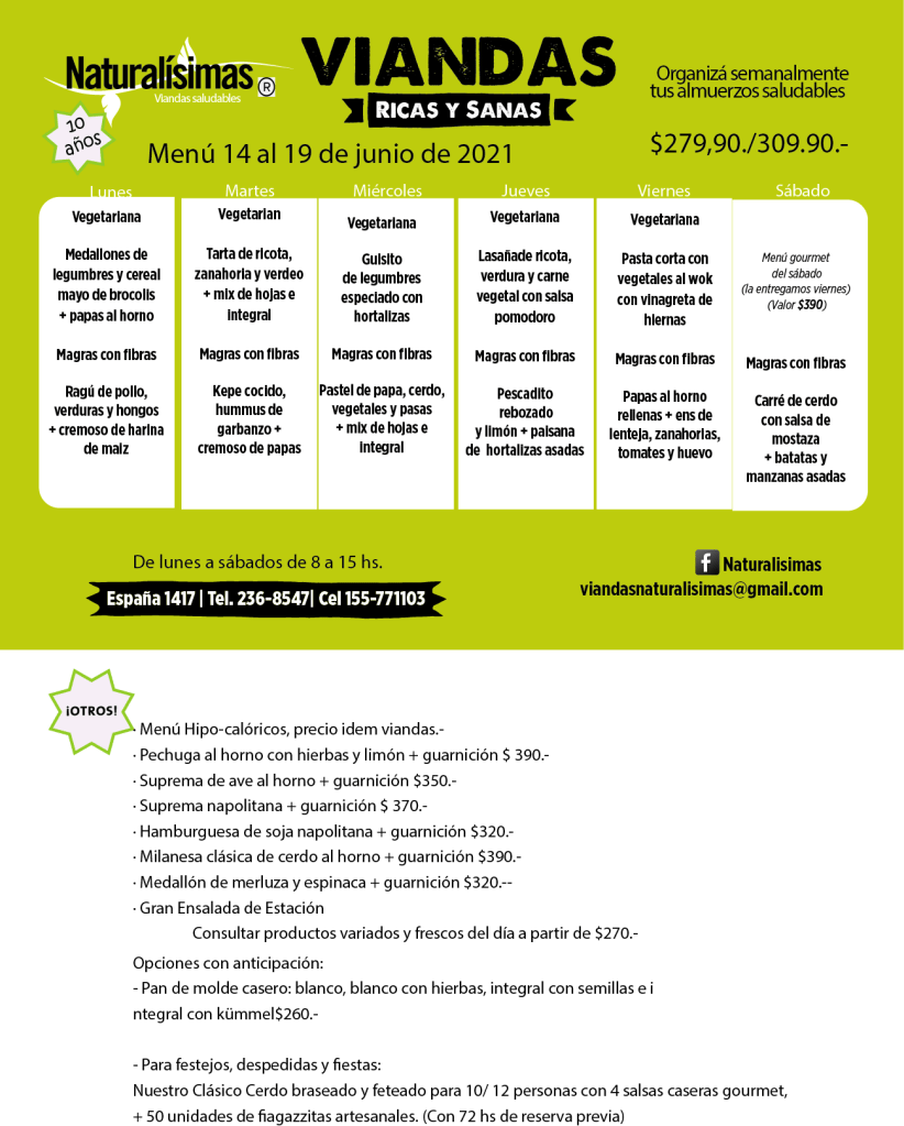 Naturalísimas Centro 236-8547 / 155-771103 España 1417 - Rosario Lunes a sábados de 08 a 15 hs