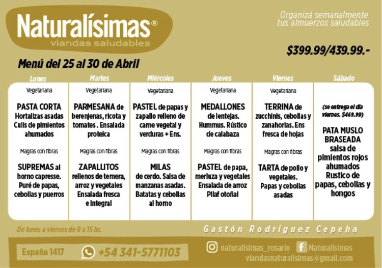Menú Menú del 25 al 30 de abril del 2022 Publicado por Naturalisimas el abril 25, 2022 Comparte esto: Haz clic para compartir en X (Se abre en una ventana nueva) X Haz clic para compartir en Facebook (Se abre en una ventana nueva) Facebook Me gusta Cargando... Relacionado