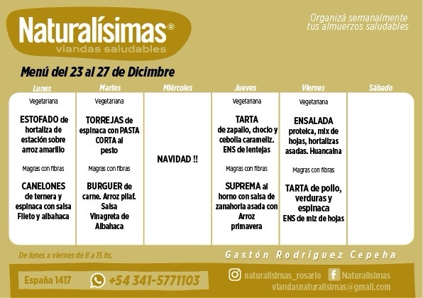 Menú Viandas del 23 al 27 de diciembre del 2024 Publicado por Naturalisimas el diciembre 22, 2024 Comparte esto: Haz clic para compartir en X (Se abre en una ventana nueva) X Haz clic para compartir en Facebook (Se abre en una ventana nueva) Facebook Me gusta Cargando... Relacionado