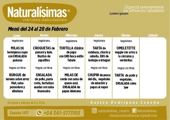 Menú Menú del 24 al 28 de febrero del 2025 Publicado por Naturalisimas el febrero 21, 2025 Comparte esto: Haz clic para compartir en X (Se abre en una ventana nueva) X Haz clic para compartir en Facebook (Se abre en una ventana nueva) Facebook Me gusta Cargando... Relacionado